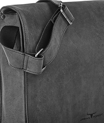 URBAN FOREST, Cntmp, Borsa a mano, Messenger, Business, Borsa a tracolla, DIN-A4, In Pelle Naturale, Grigio Scuro, Antracite, 35 x 27 x 10 cm