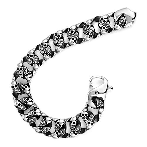 URBAN JEWELRY Bracciale da uomo gotico con testa di cranio per uomo in acciaio inossidabile 316L, 8 inch, Acciaio inossidabile, Senza pietre preziose