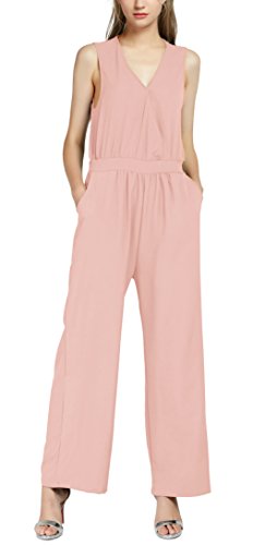 Urban GoCo Jumpsuits Tuta V Collo Elegante Senza Maniche Long Pantaloni Pagliaccetto Playsuit Donna