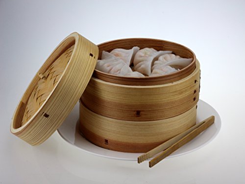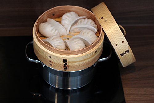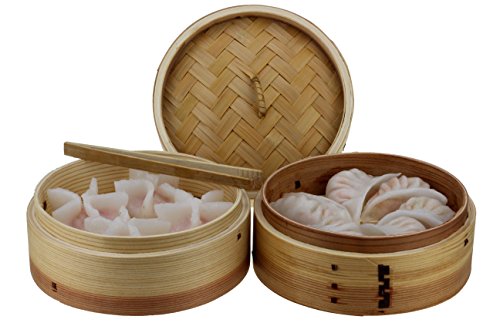 Urban Lifestyle Bamboo Steamer 3 Pezzi racchiusi in Legno di Cedro, con Coperchio, e 2 Livelli di pinze bambù Dimsum Basket/Vapore/Vapore Basket/Vapore Basket/Vapore (Ø 18 cm)