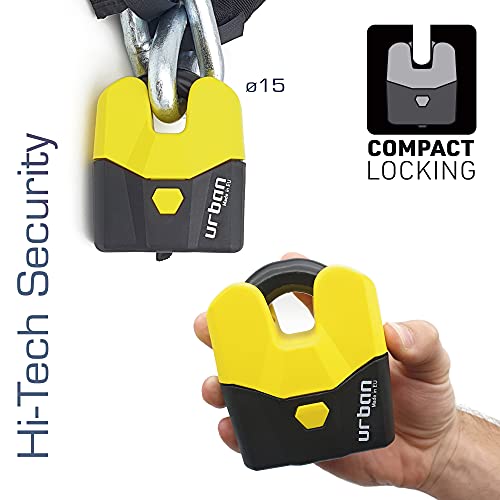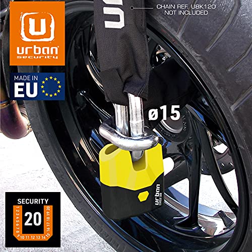 URBAN U8K Lucchetto Antifurto ad Alta Sicurezza per Moto Scooter, Serratura per Porta, Lucchetto per Container, Combinazione Catena Moto, 3 Chiavi di Sicurezza, Made in EU, ø15