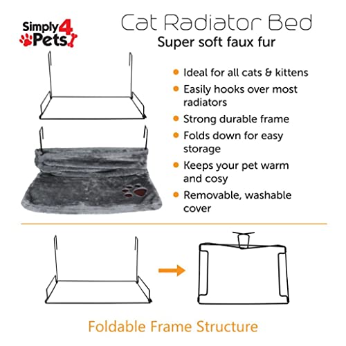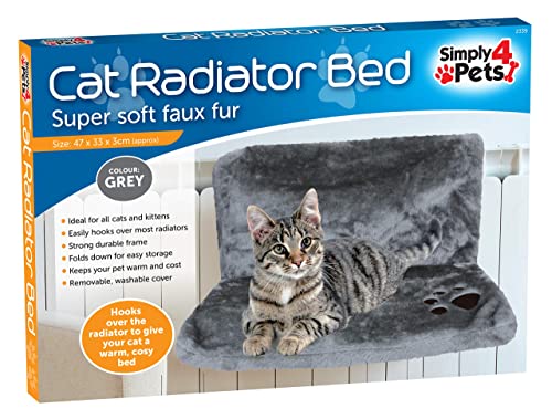 URBANESSENTIALS Amaca per radiatore per gatti, super morbida, in finta pelliccia, colore grigio, letto per radiatore, forte e durevole, 45 x 31 x 24 cm (lunghezza x altezza x larghezza)