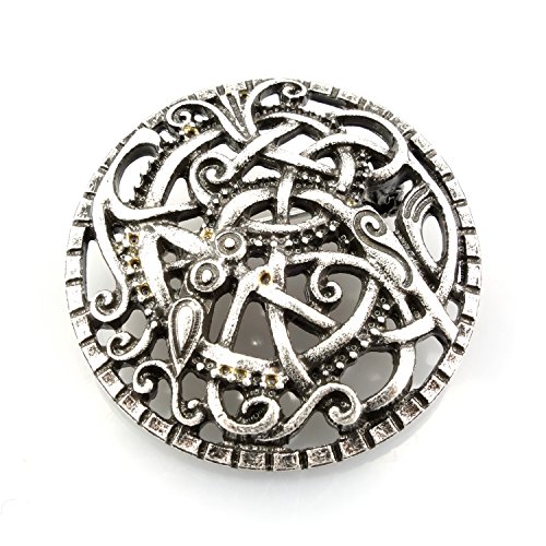 Spilla vichinga decorata con un motivo di serpente di Midgard e nodo celtico in colore argento
