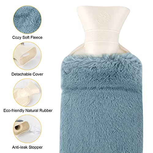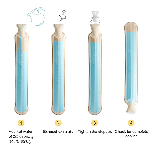 Borsa dell'acqua Calda 2L: la borsa dell'acqua calda lunga (73 * 14 cm) può contenere 2 litri di capacità per aiutare a coprire tutte le aree del corpo. Riempire SOLO fino a 2/3 della capacità piena d'acqua, termico di lunga durata.