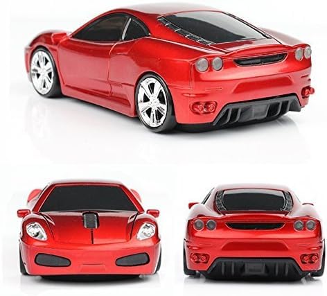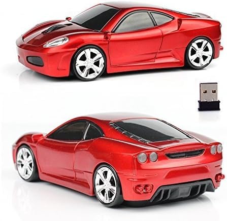 UrChoiceLtd Mouse ottico senza fili, a forma di auto da corsa 3D con fanale anteriore e posteriore luminoso, da 2,4 GHz e 1.600 dpi