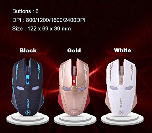 UrChoiceLtd 2017 NAFFEE G5 2.4GHz Wireless Di Ricarica Mute 6D 2400 DPI 6 Pulsanti Ottico USB Ergonomico Mouse Da Gioco Portatile Notebook Desktop Del Computer Giochi Office 3 Vivaci Colori (Oro)