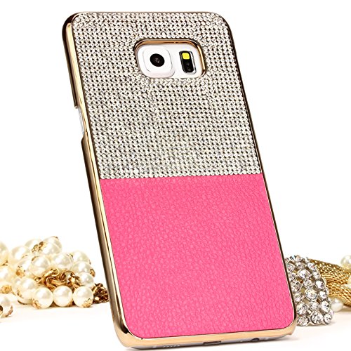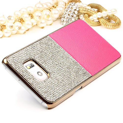 Urcover Custodia Compatibile con Samsung Galaxy S6 Edge Plus Back-Case Rigida con Strass Brillantini Cover Protettiva Guscio Glitter da Donna - Fucsia