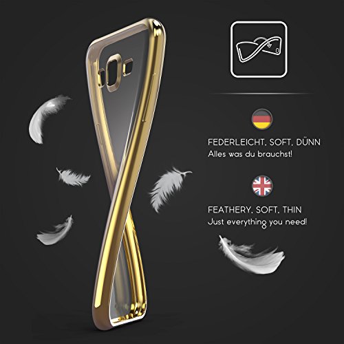 Urcover Custodia, Compatibile con Samsung Galaxy J5 (2015) Bordo a Specchio Cover Protettiva Trasparente Ultra Sottile Back Case Antiurto - Oro