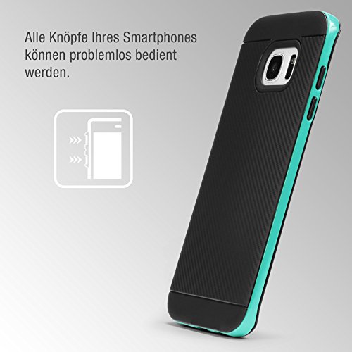 Urcover Custodia Compatibile con Samsung Galaxy S7 Edge Carbon Loock Ibrida Back Cover Rigida policarbonato Anti-Scratch Bumper Case Shock-Absorption - Verde Menta