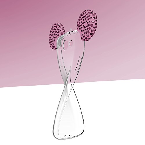 Urcover Custodia Compatibile con Samsung Galaxy S3 Orecchie da Topolino Cover Protettiva in Silicone Trasparente Morbida Laccio, Back Case con Strass Brillantini Femminile Donna - Fucsia