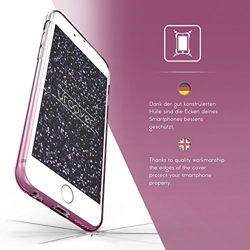 Urcover Custodia Glitterata Apple iPhone 6 Plus 6s Plus | Cover Trasparente Ultra Slim Flessibile in Silicone TPU Fucsia | Brillantini Morbida Colorata