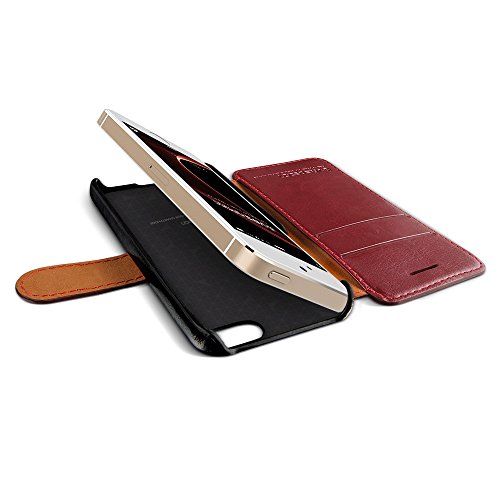 URCOVER Custodia Portafoglio Apple iPhone SE / 5s / 5 Dandy Layered VRS | Cover Wallet in Vera Pelle Fatta a Mano | Flip Case Semi Rigida | Elegante Business Cuoio Impermeabile Vinaccio/Nero