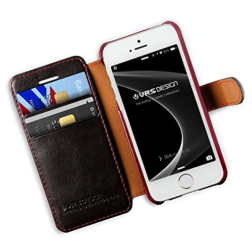 URCOVER Custodia Portafoglio Apple iPhone SE / 5s / 5 Dandy Layered VRS | Cover Wallet in Vera Pelle Fatta a Mano | Flip Case Semi Rigida | Elegante Business Cuoio Impermeabile Nero/Vinaccio