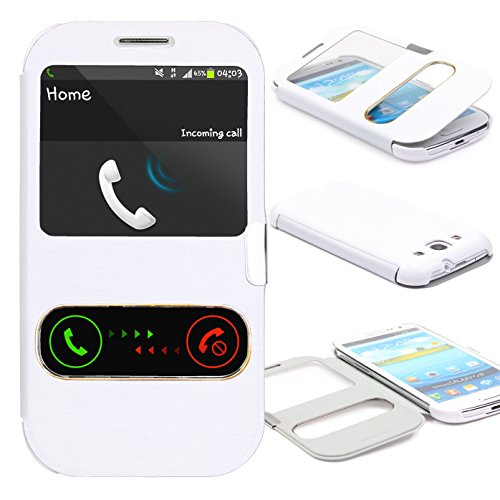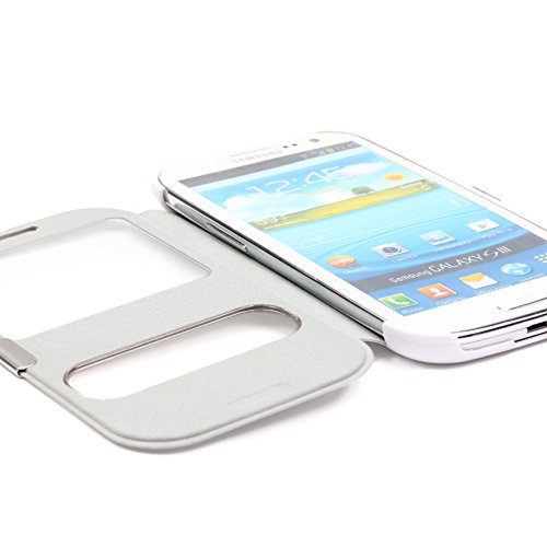 Urcover Custodia Portafoglio Galaxy S3, Wallet Cover [Funzione S-View] Cover Libro Chiusura Magnetica Rigida Samsung Galaxy S3 4,8 Pollici - Bianco