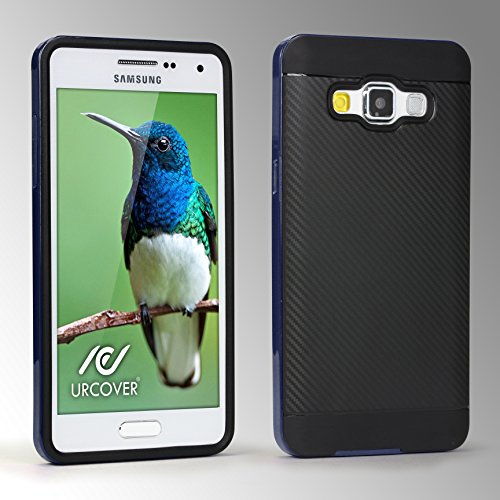 Urcover Custodia Protettiva Compatibile con Samsung Galaxy A7 2015 Back Cover Rigida Carbon Style Bumper Antishock Armor Case Ibrida in Blu