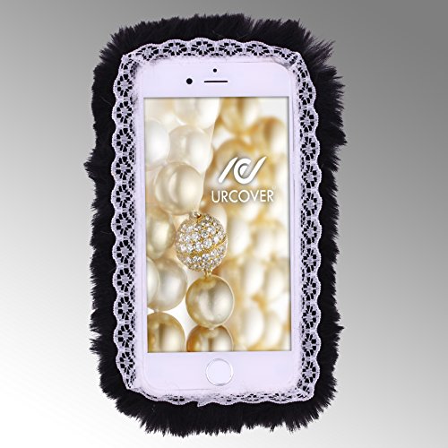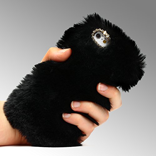 Urcover Custodia Protettiva Peluche Apple iPhone 6 Plus / 6s Plus | Bumper Morbido in TPU da Donna in Nero | Back Case Flessibile con Brillantini