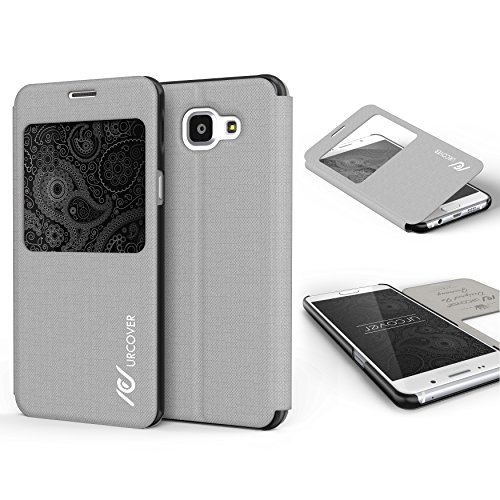 Urcover Custodia S-View Compatibile con Samsung Galaxy A5 (2016) Wallet Case Portafoglio Stand Ultrasottile Cover Libro - Grigio