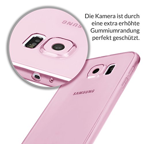 Urcover Custodia Silicone Morbida Samsung Galaxy S6 Proteggi Camera | Back Cover Ultra Sottile e Trasparente | Slim Case TPU in Rosa