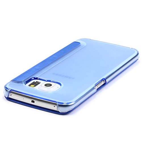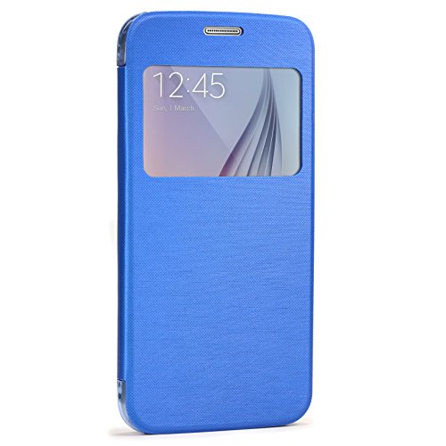 Urcover Custodia Wallet a Portafoglio con Finestra | Cover S-View Samsung Galaxy S5 Mini | Flip Case Rigida Chiusura Magnetica Stand Retro Azzurro