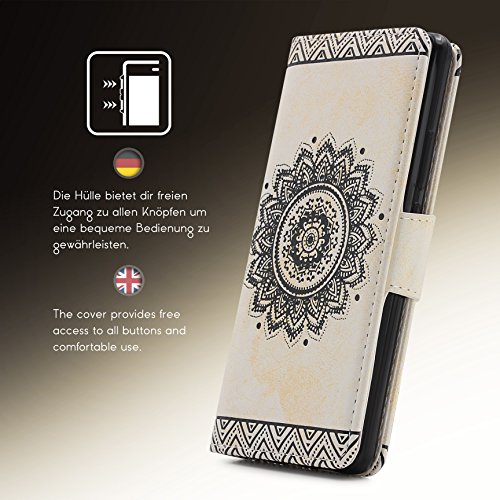 MATERIALI DI QUALITÁ: la morbida ecopelle che ricopre la cover a portafoglio per Huawei P9 Lite é decorata con simpatici disegni mandala in stile tribale