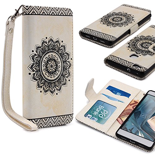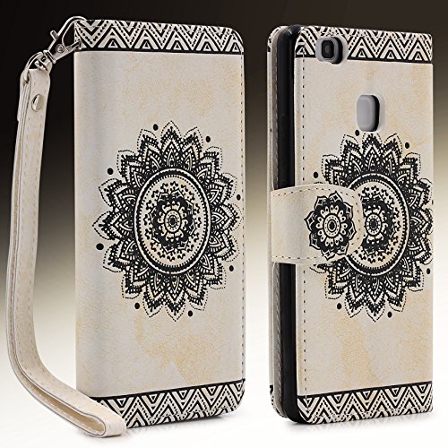 Urcover Lotus Pattern Case Wallet | Custodia Huawei P9 Lite | Flip Cover Ecopelle in Bianco | Bumper Protettiva Portafoglio Slot Card Trend Elegante Tribal Mandala Acchiappasogni