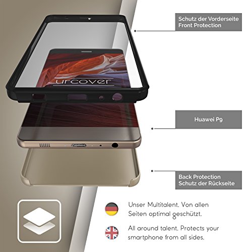 Urcover Cover P9 Nuova Touch Case Platin 2017 [ Protezione 360° Totale ] Custodia Huawei P9 Integrale Fronte Retro Semi Rigida [ Antiurto Migliorato ] Ultrasottile Bumper Trasparente di Colore Oro