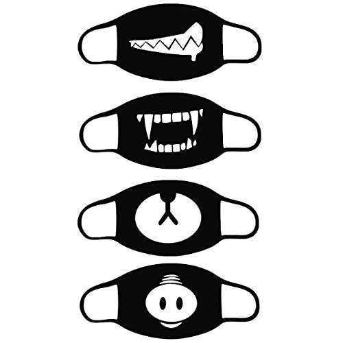 URDEAR - Confezione da 4 mascherine per bocca con anime, per uomini, donne e bambini, alla moda, antipolvere, in cotone, per corsa, ciclismo, campeggio, viaggi