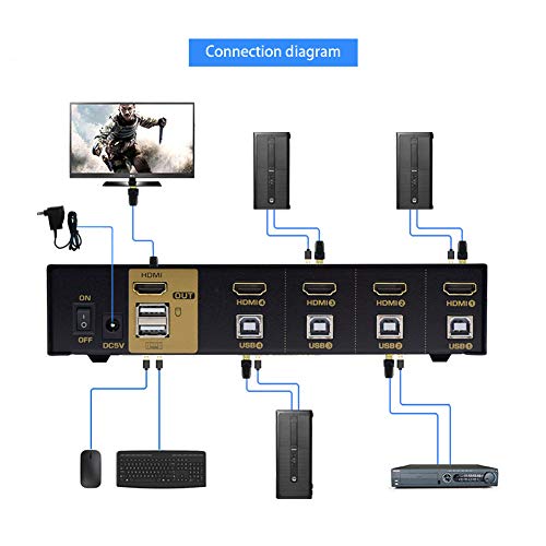 Ureru 4 Porte USB HDMI Switch KVM Supporto Multi-Computer di commutazione Video ad Alta risoluzione e Audio HD Digital Experience Supporto Windows 2000 / XP/Vista Linux e Mac