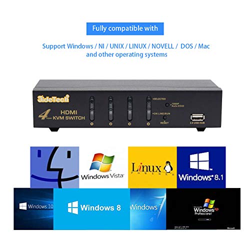 【HDMI KVM Switch a 4 porte】: Controlli 4 computer o altri dispositivi HDMI (DVR, NVR, server, hard disk giocatori ecc) da una singola console (mouse USB, tastiera USB e di un monitor), la porta HUB USB 2.0 consente di stampante USB quota, uno scanner o un'unità flash convenientemente.