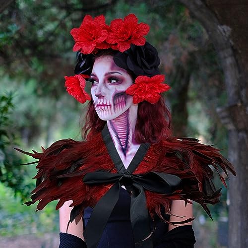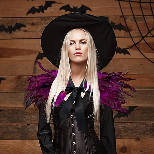 URFEDA Collo a scialle con coprispalle in piume gotiche collo a scialle con collo in piume da donna sciarpa con boa di piume costume da boa con piume da donna spalline con papillon mantello costume