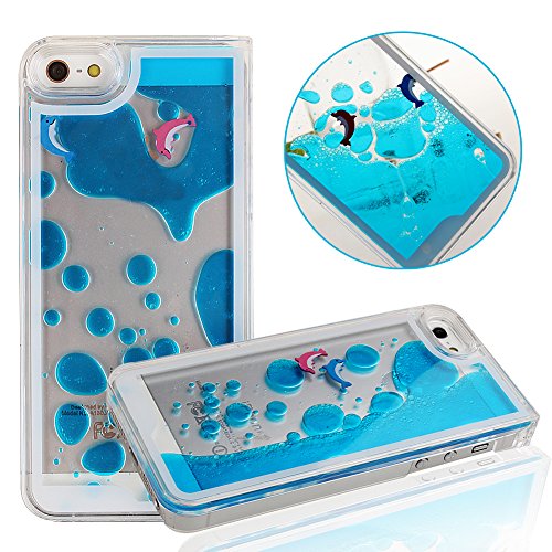 URFEDA Protective Case Cover iPhone 5s Case Transparente Copertura Tacsa Custodia Caso Covers Líquido Agua Fluir Mudanza Creativa Cases Delfino-Blu