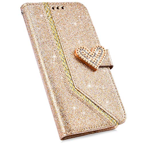 Urhause Custodia Compatibile con Huawei Mate 20 Cover Glitter Bling Brillantini Strass PU Pelle Libro Flip Portafoglio Ultra Sottile Cover Magnetico Slot per Schede Kickstand Case Bumper,Oro
