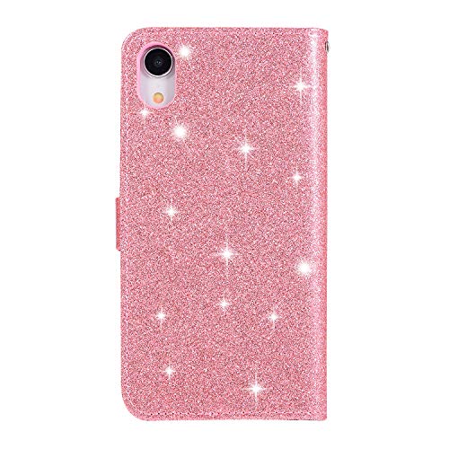 Urhause Custodia Compatibile con iPhone XR Cover Glitter Bling Brillantini Strass PU Pelle Libro Flip Portafoglio Ultra Sottile Cover Magnetico Slot per Schede Kickstand Case Bumper,Rosa