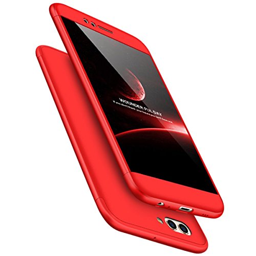 Urhause KunyFond Custodia Compatibile Huawei P8 Lite 2017 Cover Protezione dello Schermo Serie Lusso Vetro Temperato Rigida Plastica Hard PC 360 Gradi Full Body Protection Slim Scratch Bumper,Rosso