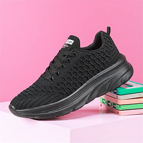 URIBAKY - Scarpe da donna alla moda, in maglia traspirante con lacci, colore puro, sneakers da corsa, per sport, fitness, per attività all'aria aperta e all'aria aperta, Nero, 37 EU