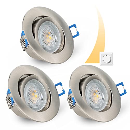 URing Faretto LED da incasso 230V dimmerabile Orientabili, Faretti a Luce Led a soffitto 3000K bianco caldo 5W 650LM, Rotondi Ultra Piatti Lampada da Incasso per bagno, soggiorno, bianco, Nichel