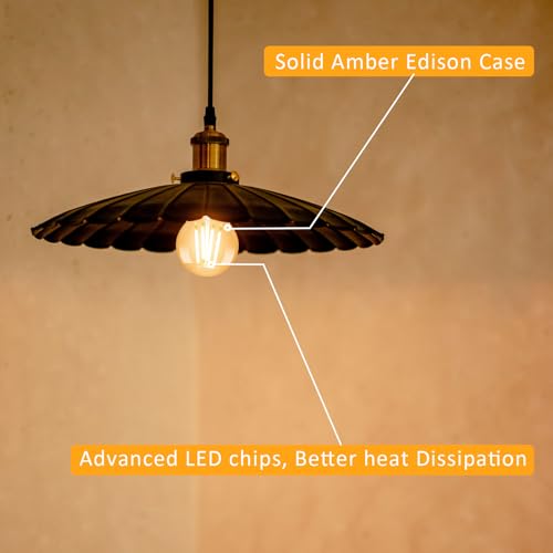 【Luce LED E27 ambrata】: questo LED E27 Vintage bianco caldo colpisce per il suo design retrò, il caldo alloggiamento color ambra e il filamento per creare un look industriale. L'estetica nostalgica delle lampadine dona ad ogni stanza un'atmosfera unica. Dona alla tua stanza un tocco industriale nostalgico.