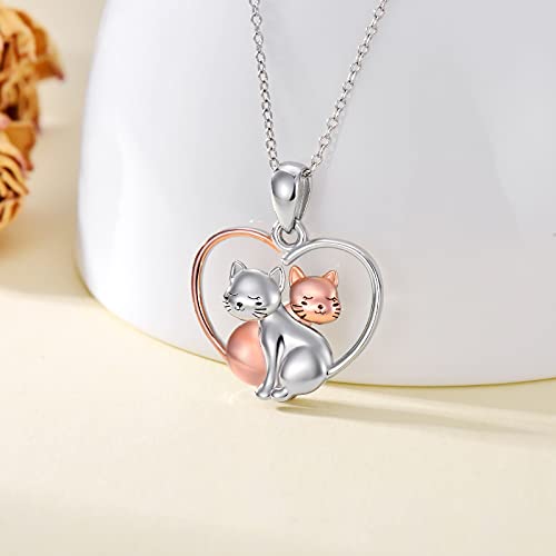 URONE Regali Per Gatti Per Amanti dei Gatti Collana Con Ciondolo a Forma di Cuore di Gatto in Argento Sterling Regali di Compleanno Per Donne e Ragazze