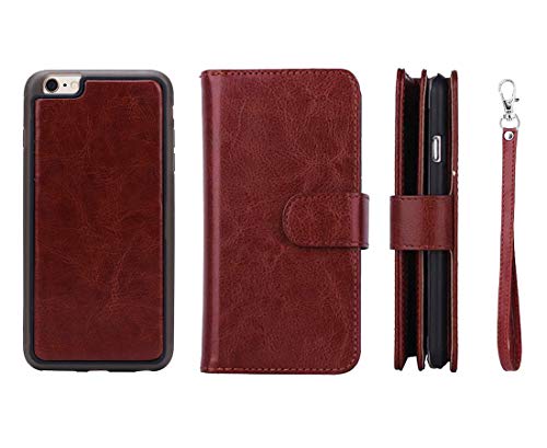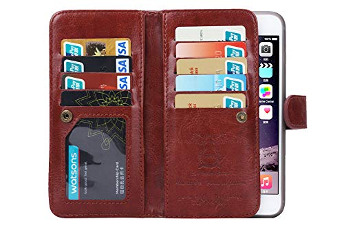 Urvoix, custodia a portafoglio 2 in 1, compatibile con Apple iPhone 8 Plus/7 Plus/6S Plus/6 Plus (5,5”). Custodiain pelle dotata di supporto per carte di credito magnetico e rimovibile Brown