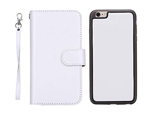 Urvoix, custodia a portafoglio 2 in 1, compatibile con Apple iPhone 8 Plus/7 Plus/6S Plus/6 Plus (5,5”). Custodiain pelle dotata di supporto per carte di credito magnetico e rimovibile White