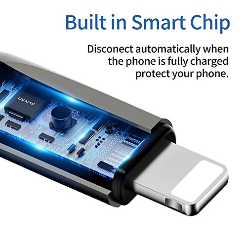 USAMS Cavo su USB 1.2M/3.9FT Durable Nylon Intrecciato Auto Disconnect LED Sync Data Caricamento Veloce per 8 Plus 7 Plus 6S 6 Plus 5 5S SE,iPad iPod