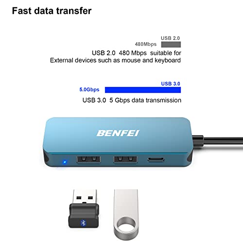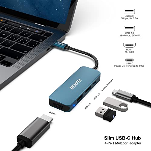Hub USB-C, adattatore hub USB-C 4-in-1 BENFEI, con HDMI 4K, alimentatore da 60 W, 2 porte USB, per MacBook Pro 2020/2019/2018, Pixelbook, XPS