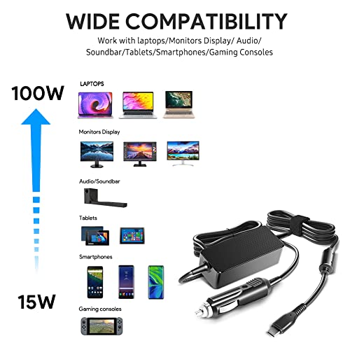 KFD 100W USB-C Caricabatterie Auto Per MacBook Pro, Dell, HP Elitebook 840 G7, Lenovo Thinkpad Notebook Power Delivery 12V PKW Laptop Typ-c 12-24V Auto Alimentatore Adattatore Caricatore