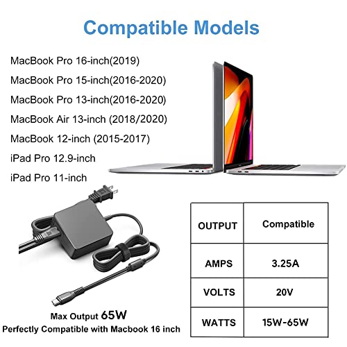 KFD 65W USB-C Caricatore Alimentatore per Lenovo ThinkPad T480 T480s T580 T580s Chromebook 100e 300e C330 N23 Yoga C930 C940 C740 S730 730 730S 910 920 65W Type c Notebook PC portatile Caricabatterie