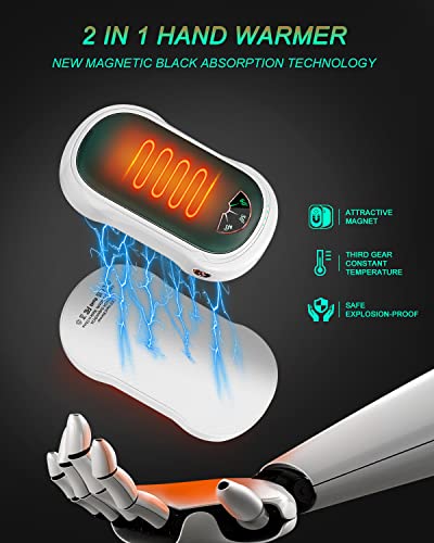 [Design di aspirazione magnetica]: La nuova tecnologia di aspirazione magnetica divide uno in due e lo trasforma in due scaldamani, raddoppiando il calore. Puoi condividere il calore con la tua famiglia e gli amici sempre e ovunque. Ogni scaldamani è dotato di una porta di uscita USB, che può essere utilizzata come alimentatore mobile per ricaricare il telefono cellulare o altri dispositivi in caso di emergenza. Comodo e pratico, comodo stoccaggio, senza spazio.