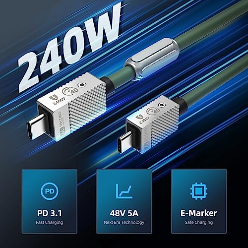 Cavo da USB-C a USB-C da 240 W per Thunderbolt 4 (0,5 m) Trasferimento dati 40 Gpbs, 8K/doppio display 4K Cavo di tipo C compatibile con Thunderbolt 4/3 USB 4 per dispositivo MacBook di tipo C, verde