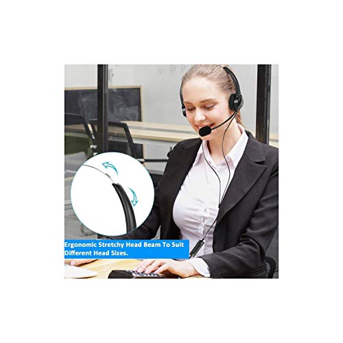 ✔【Cuffie Comfort】: Cuffie con microfono con morbidi cuscinetti auricolari in PU garantiscono una vestibilità perfetta. Cuffie Skype per telefono ultraleggere di livello aziendale dotate di archetto regolabile e l'archetto è molto flessibile e flessibile per adattarsi a tutte le dimensioni della testa come desideri.