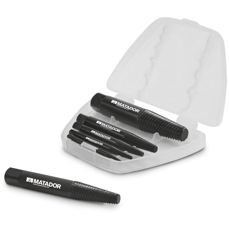 Tassi di trasformazione delle viti per la spegnimento di viti rotte con un filo destro e per rimuovere i tubi strappati da raccordi con scanalatura fresata e geometria ottimizzata e lunghezza del filetta Con geometria grigia e ottimizzata e lunghezza del filo, quindi una notevole riduzione del taglio di uscita, arrotolato, filettata, del filo, impostata in cassetta di plastica per spegnere viti rotte con un filo destro e per rimuovere i tubi strappati dagli accessori 59 CRMO4 induriti a 54-56 HRC / bruciati