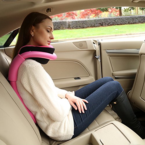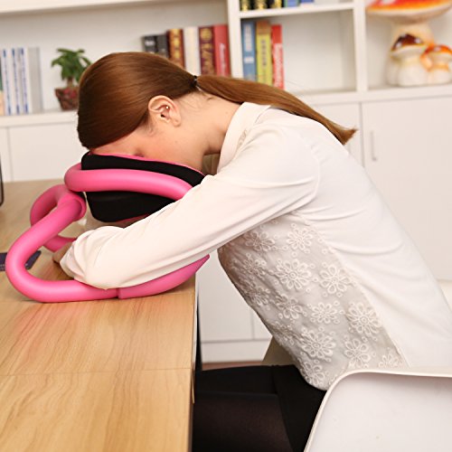 UsEasy - cuscino aereo, cuscino da viaggio, memory foam, o-shape, con filo di ferro zincato., Pink, 26 x 22 x 21 cm