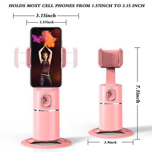 USHINING Supporto per Telefono Cellulare, Bastoni Selfie con Funzione di Tracciamento del Viso, Rotazione a 360°, Niente App Richiesta, per iPhone e Android, Stream Live, Vlog Riprese, Video Chat Rosa